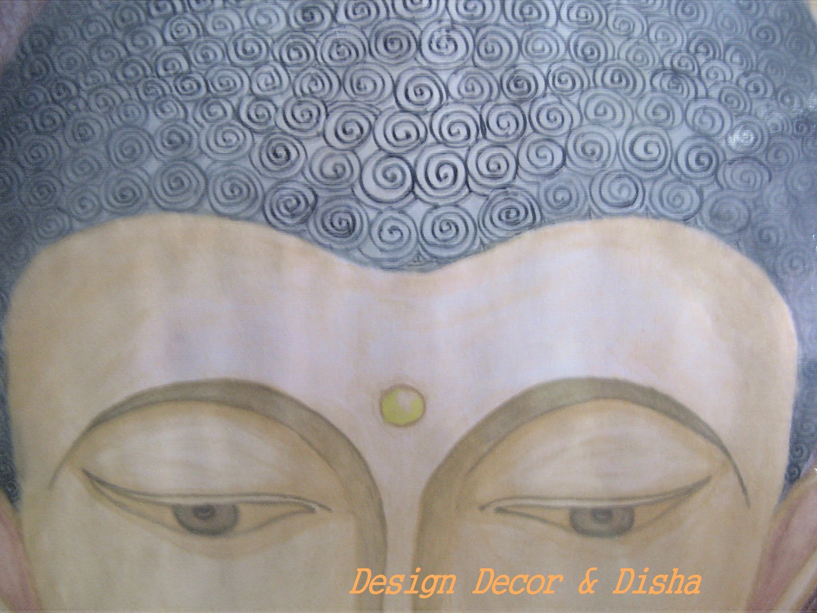 I was afraid of using oil colors so I chose water colors. It took me 2 days (approx. 8-9 hrs) to complete this painting. As you can see the head part of Buddha was the most difficult thing and it took 2 hrs to be completed. Making curls was very interesting and fun part and when I was done with this particular part it was wonderful feeling looking at it.