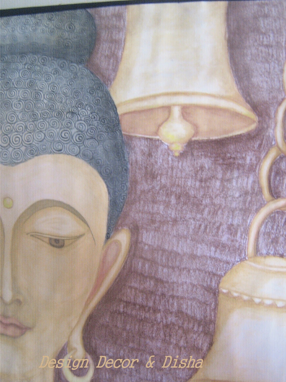 Then I wanted a peaceful smile on Buddha’s face and some shading on either sides of the lips worked wonder. Painting complete background with water color was not a good idea so I opted for soft pastels. Though I’m not very happy with the final look but it gave me great satisfaction that my own artwork will going to be hung in my living room……..don’t you feel the same after doing some DIY projects or after some before and after projects or after making some art-piece with your own creative hands.