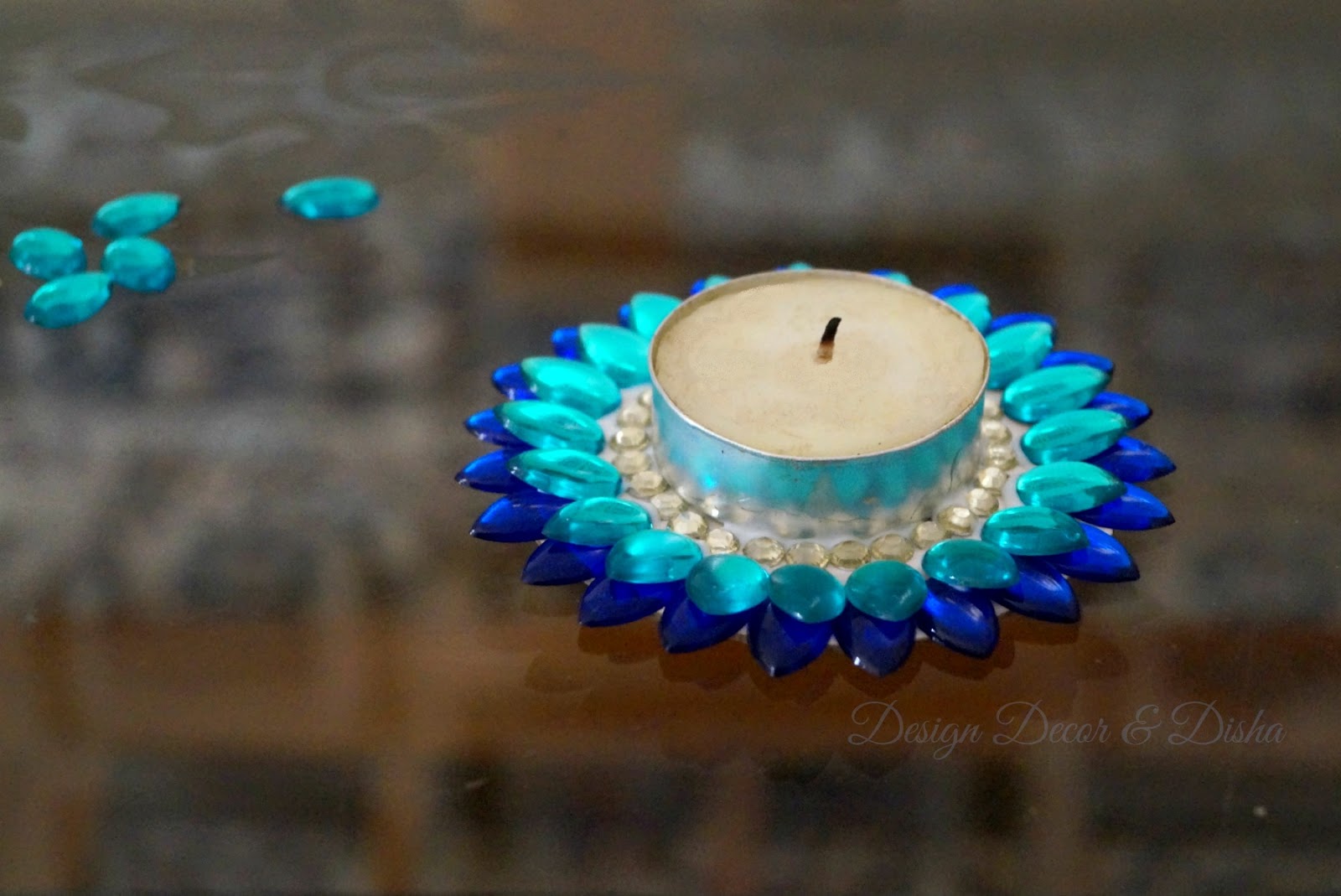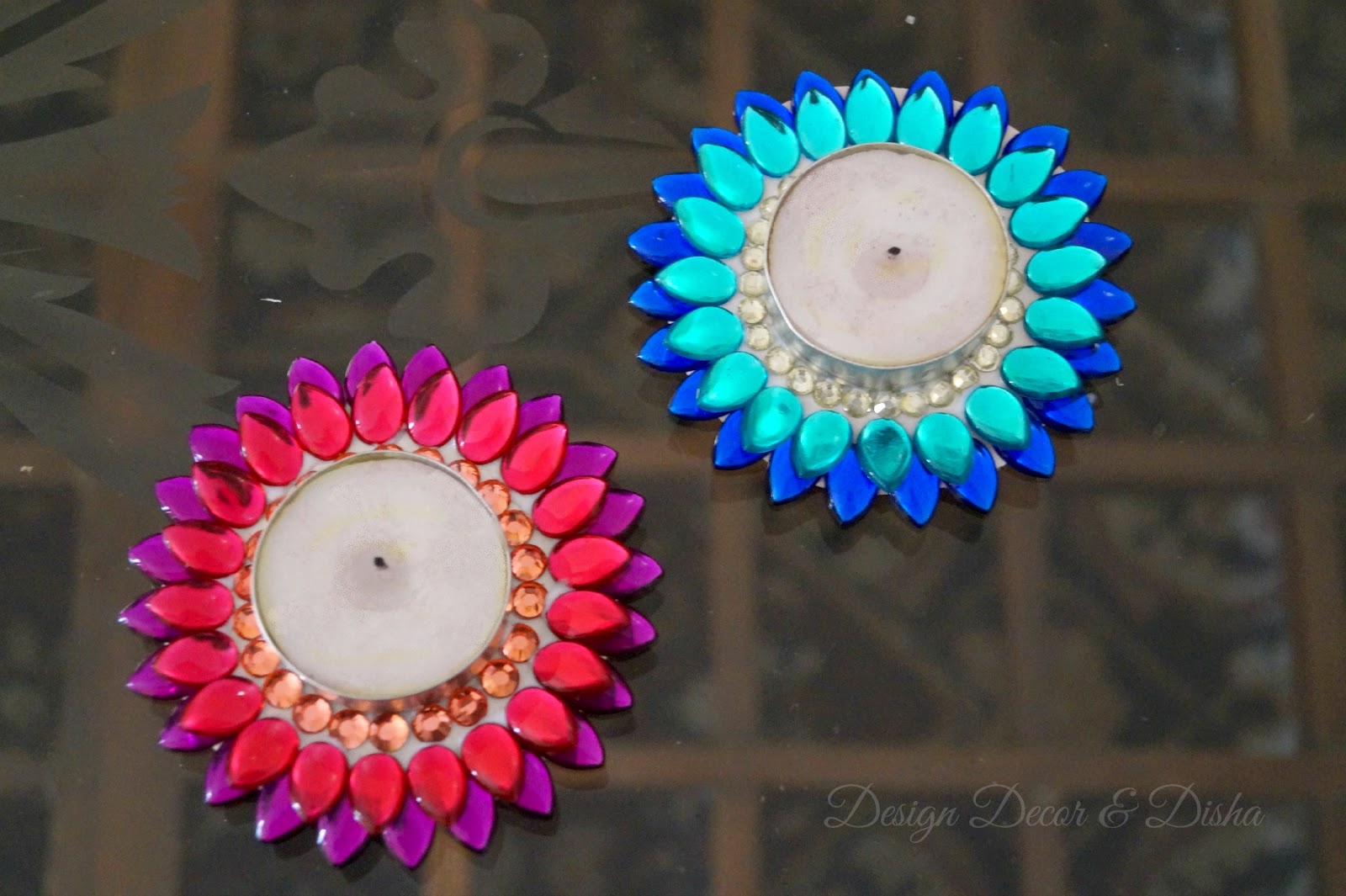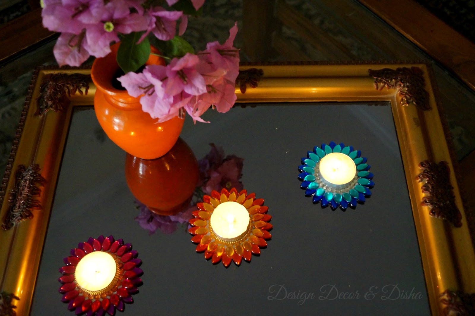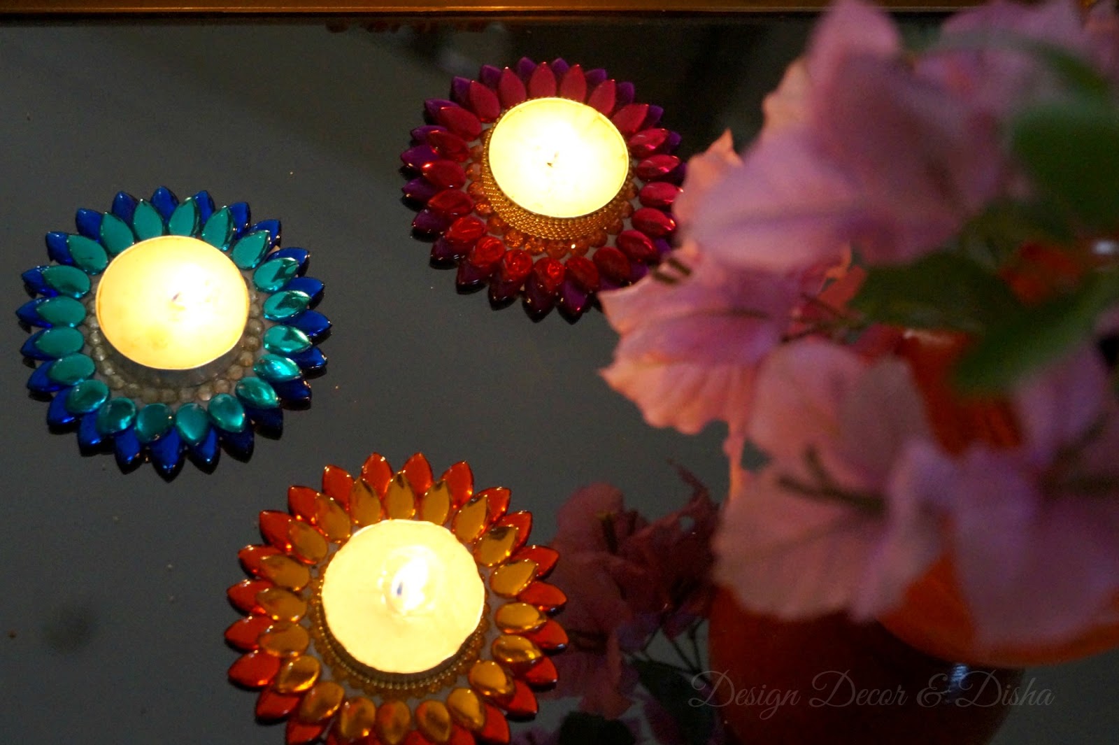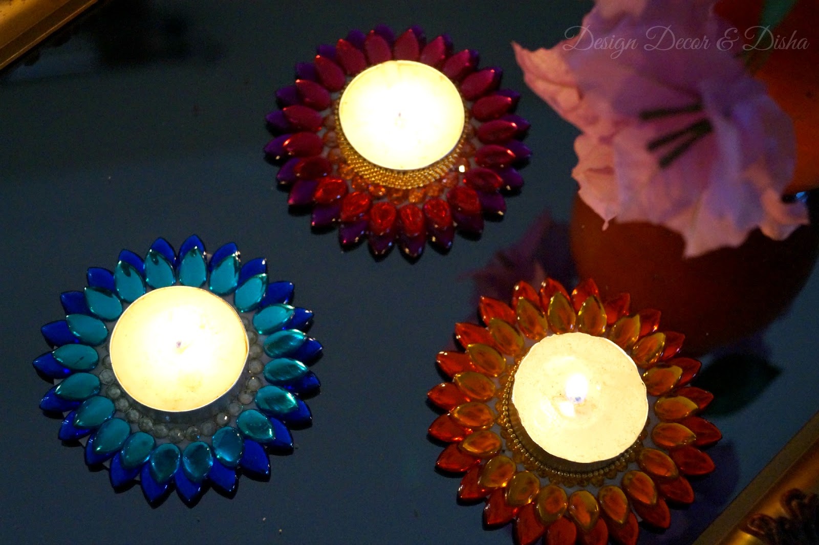 Here is how these lotus tealights have created a warm ambience and added bling to my Diwali decor.
