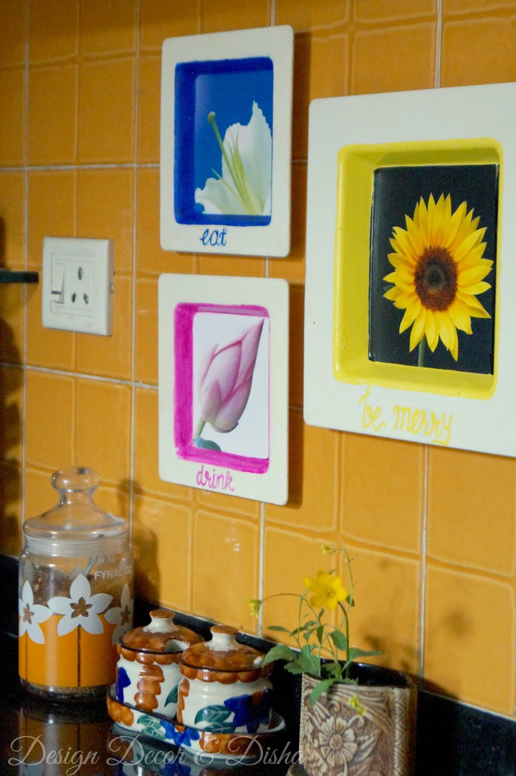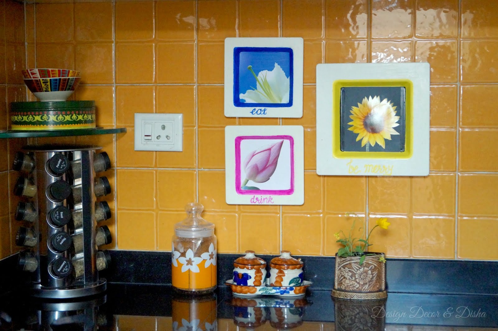 I wrote “eat, drink & be merry” on the trays to make the artwork look perfect for the kitchen. Though this DIY kitchen artwork sure has added a pop of colour in my kitchen but somehow I didn’t like the overall look.