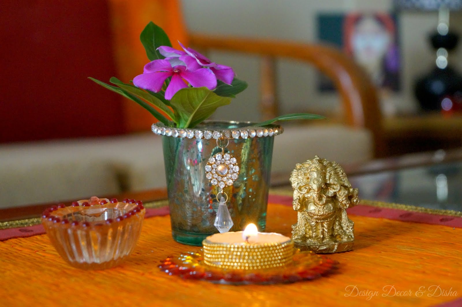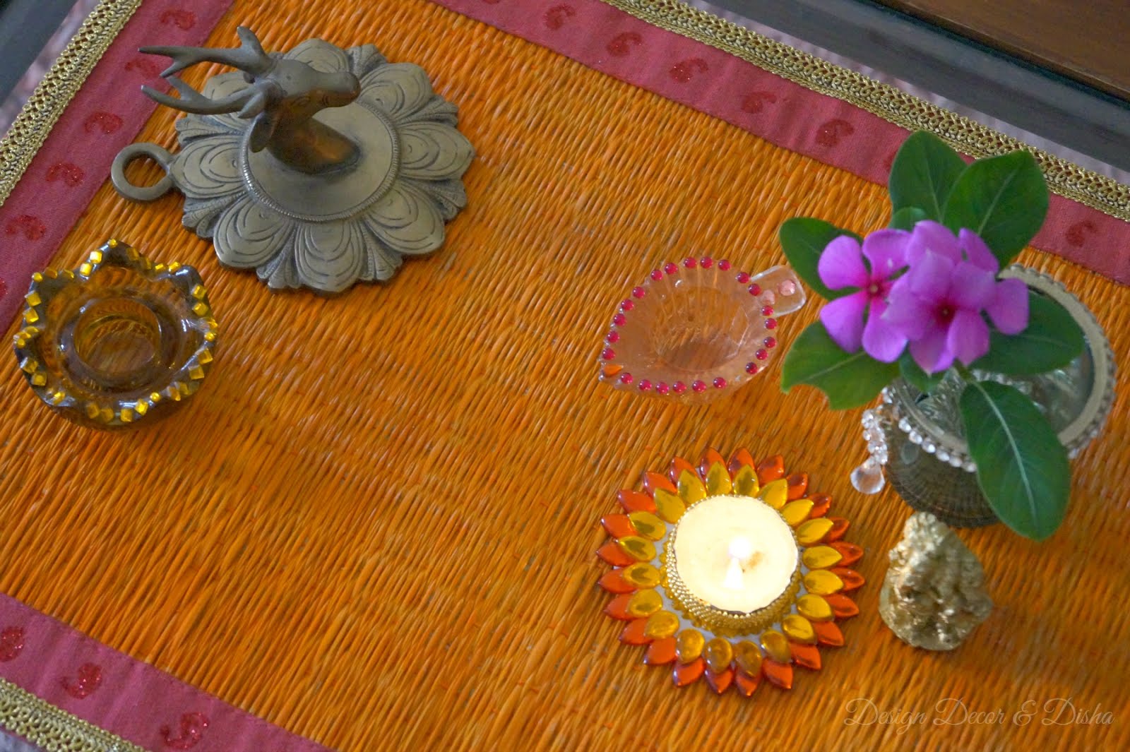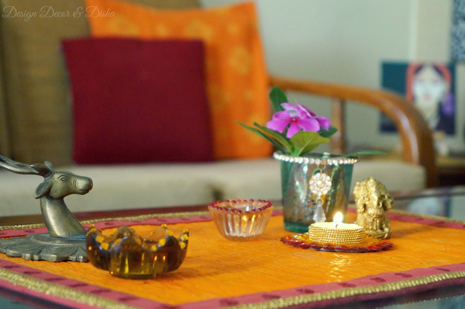 Right now I am using the painted bamboo placemat on my coffee table as I painted only one. Once all the four placemats are ready I will use them on my dining table. Till then I am enjoying my coffee table decor.