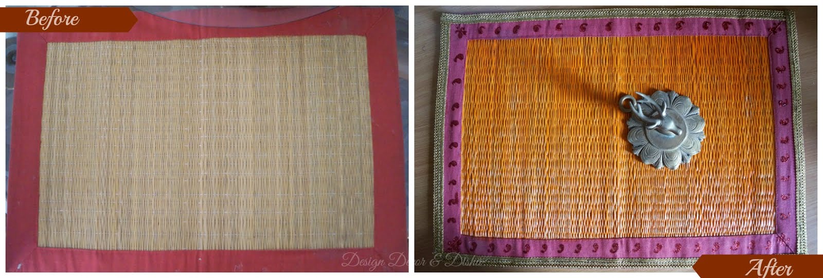 Did you like this DIY!! Do you have something like this lying unused in a corner and screaming at you to give it a new lease of life. Oh, well then the weekend is here and you can try something like this. Below is one final shot of the before and after of the bamboo placemats.