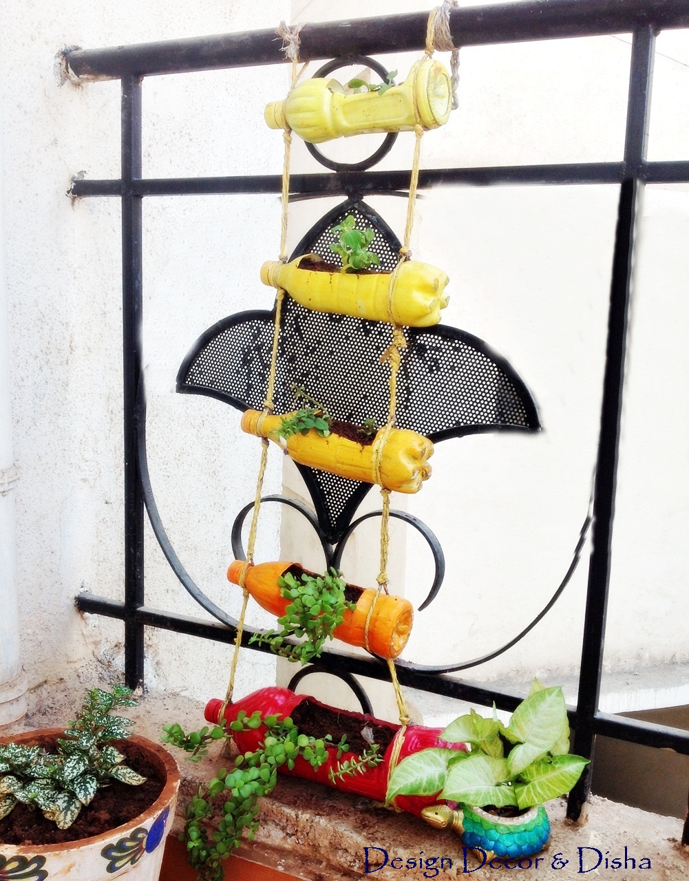 I love recycling and do a lot of recycling and up-cycling projects. Check out my earlier recycling projects here Here is one more DIY that you must have seen lots of times on various sites but this one is a little different as I made a hanging bottle planter. These bottles have been lying in my store for quite some time now and waiting for me to turn them into something useful. I have a big green thumb so a lot of my projects involve gardening.