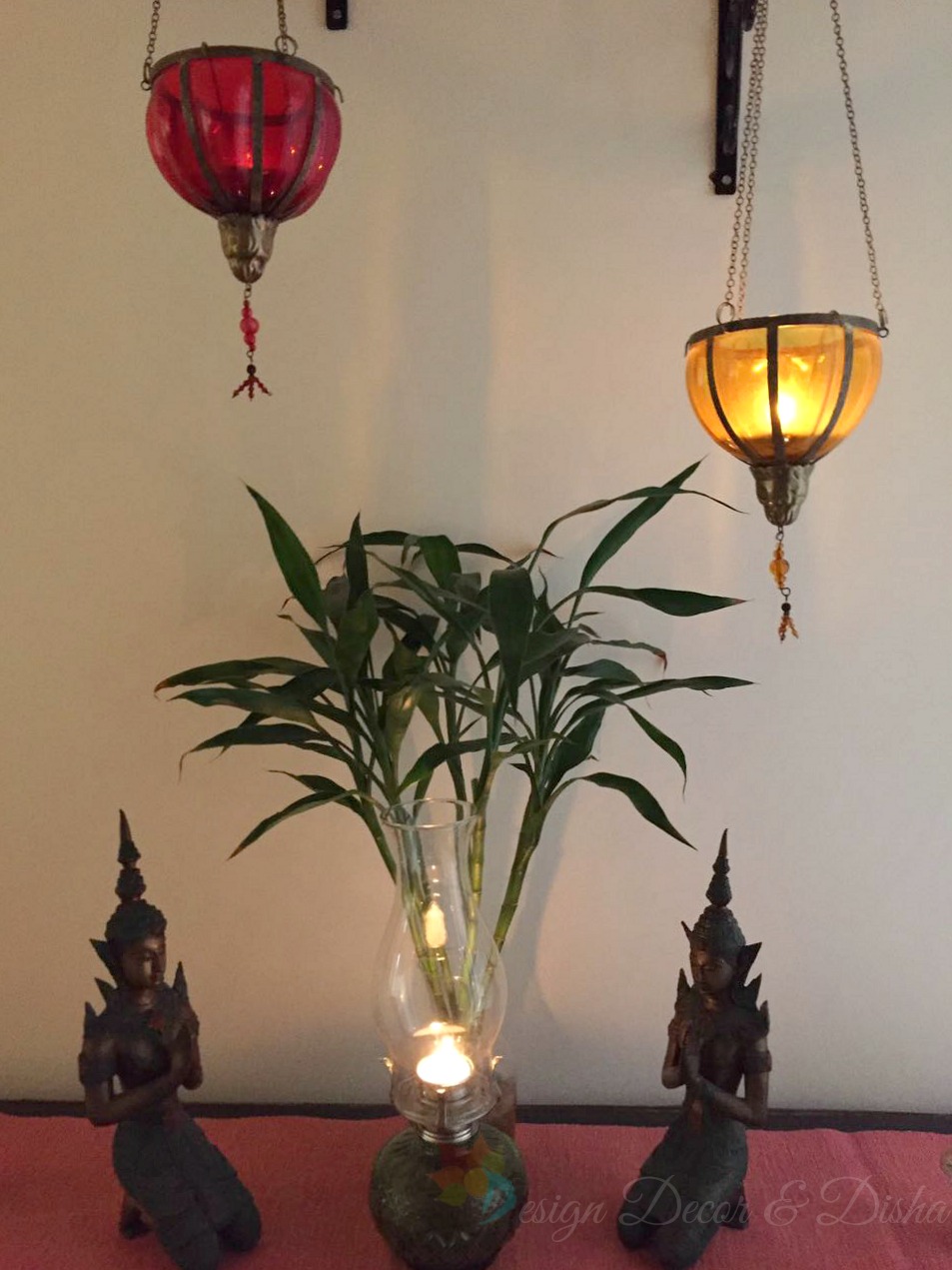 brass lotus hanging diyas. These brass lamps are show-stoppers and create such a serene atmosphere. You can experience the sense of calm in the video if you watch this on YouTube.