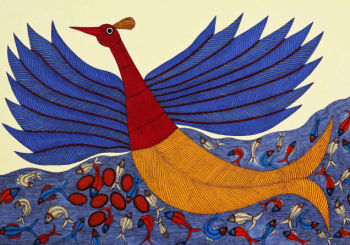 Gond Tribal Painting is done by Gondi people who live in parts of Madhya Pradesh, Maharashtra, Chattisgarh, Andhra Pradesh & Orissa. However, the majority of the artists who paint in this style come from a village called Patangarh in Mandla District of Madhya Pradesh. Patangarh is a place where a seventeen-year-old boy Jangarh Singh Shyam used to decorate his hut’s wall using dots, lines, and bold colours. Late painter J. Swaminathan introduced this young artist to the world.