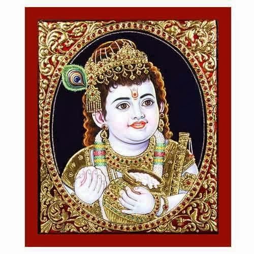 The theme of the painting is mainly Hindu God and Goddesses, mainly Krishna, Balaji, Lakshmi & Ganesha. The paintings are bright and the faces of the main figures are made divine.