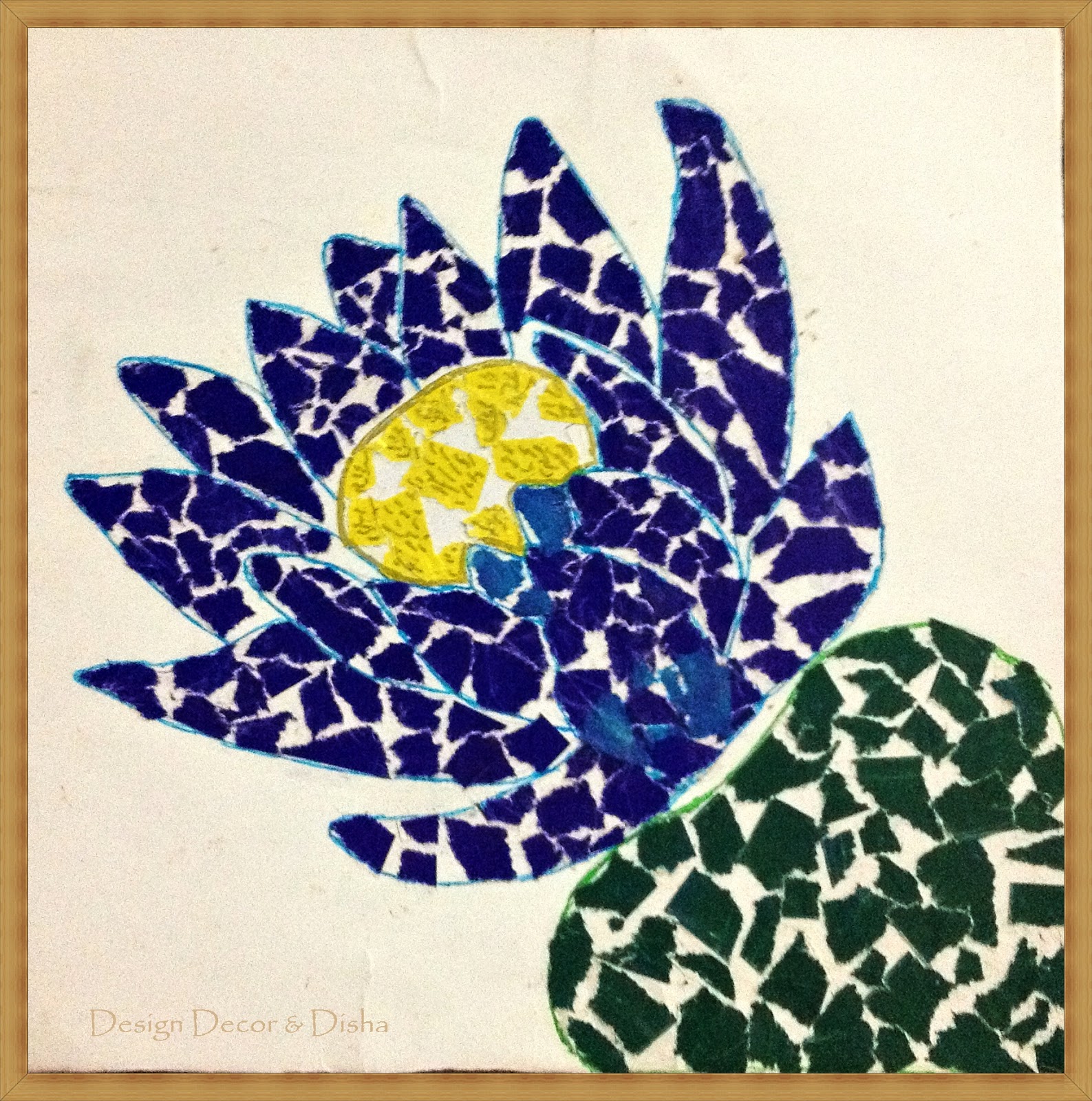 One day I decided to assist him and tried to do something more creative than usually we do. I tore few colored paper into small pieces, drew outline on a page and told him to stick all those papers in mosaic pattern. He completed it nicely & it turned out as pretty as I had thought. Now this sure going to be framed and will beautify my son’s room 🙂 Proud moment for a mommy :)))))