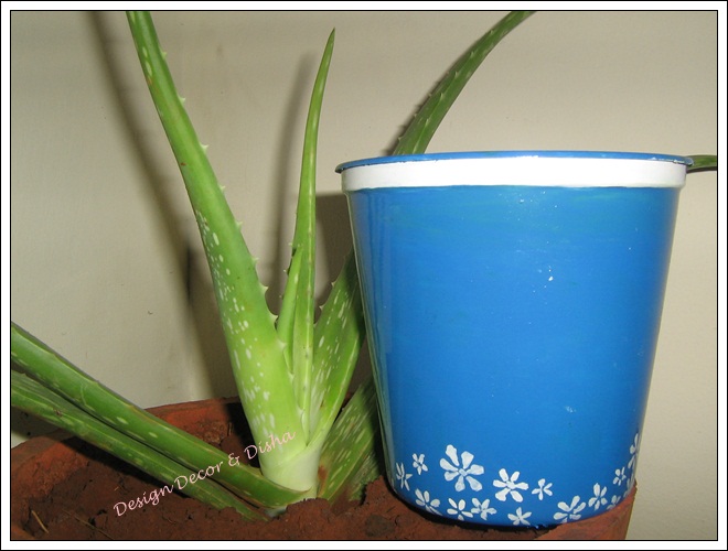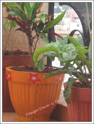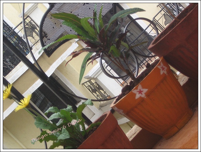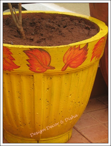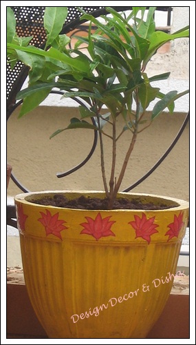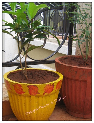 I painted planters in different colors and added floral motifs to break the monotony. I am thinking of painting some more pots (or maybe all of them) with different shades and motifs. There’s a lot to do but for now, this is what I’ve done ….